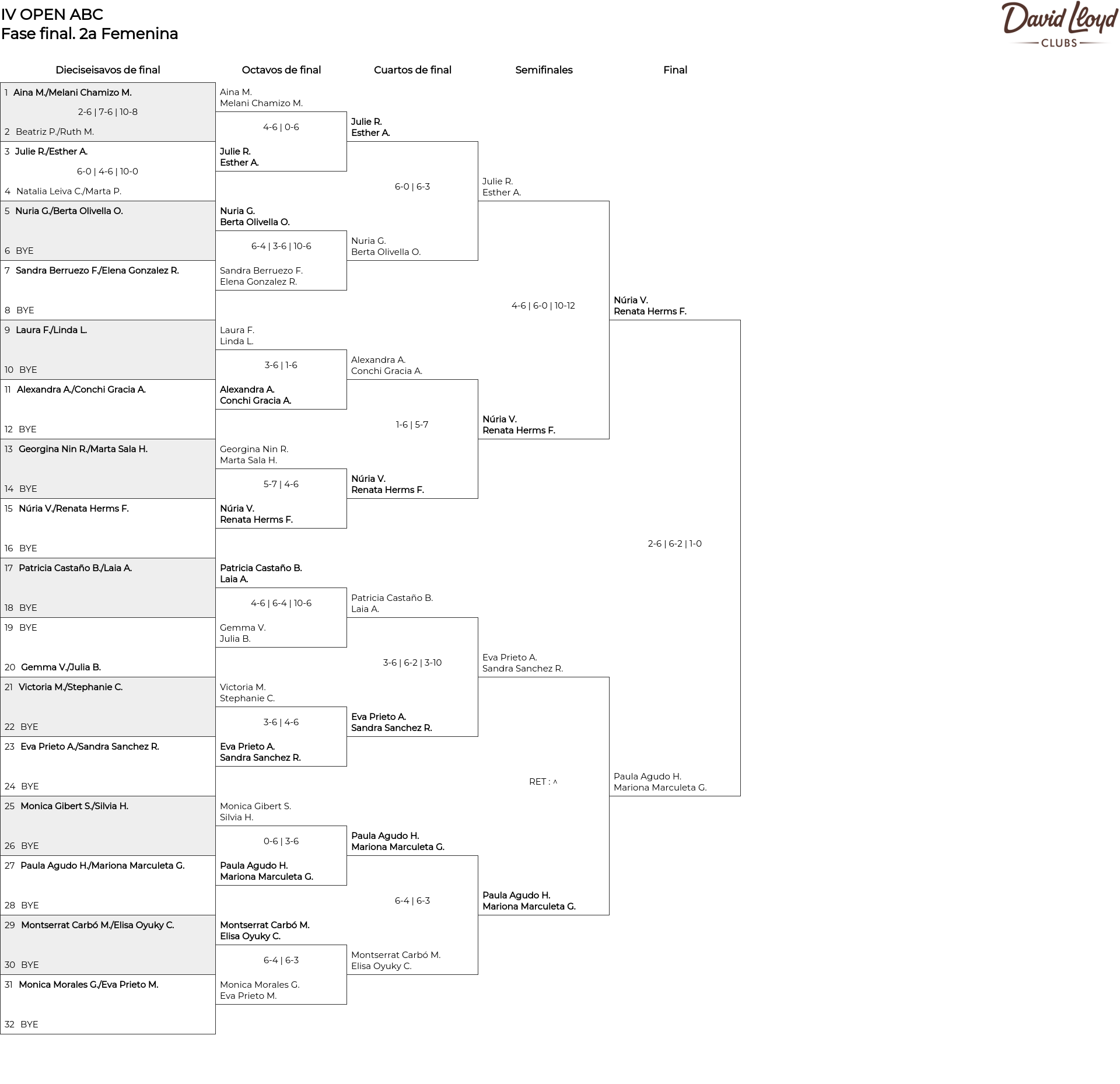 Cuadro principal 2a Femenina