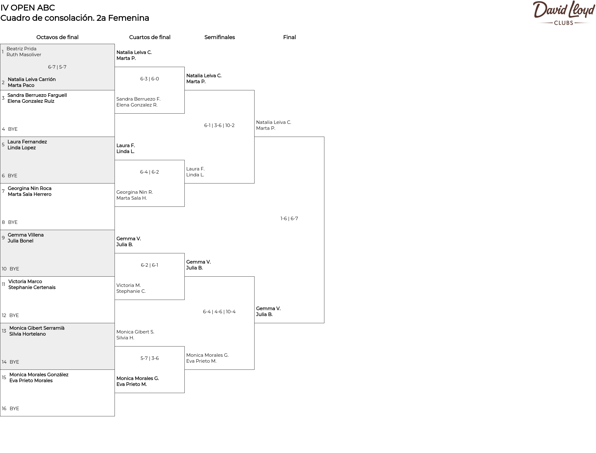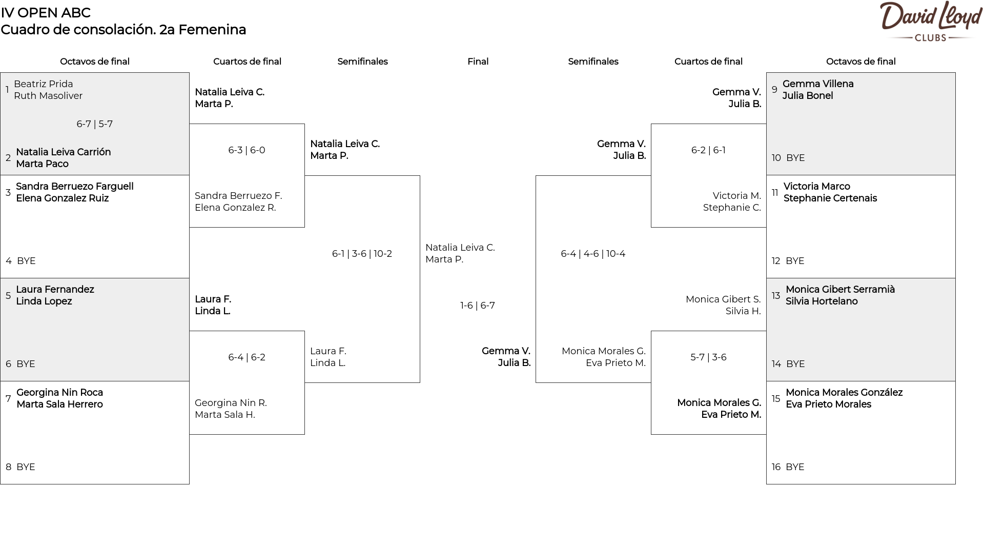 Cuadro de consolación 2a Femenina